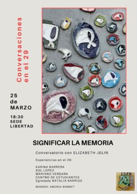 Tenemos el agrado de invitarlas/os a participar del conversatorio Significar la Memoria: Experiencias sobre pedagogía de la memoria en el 29, que contará con la presencia de Elizabeth Jelin.